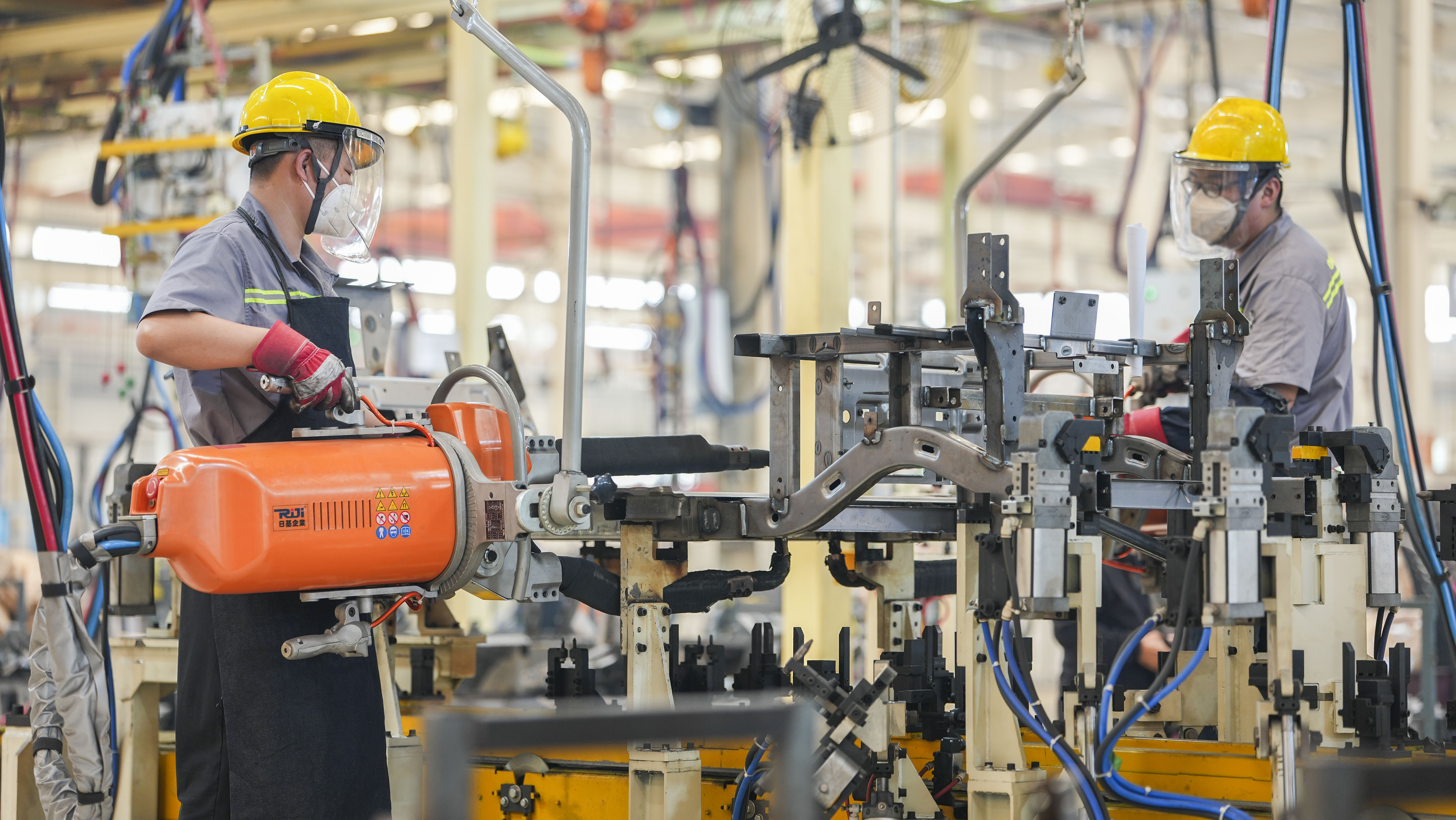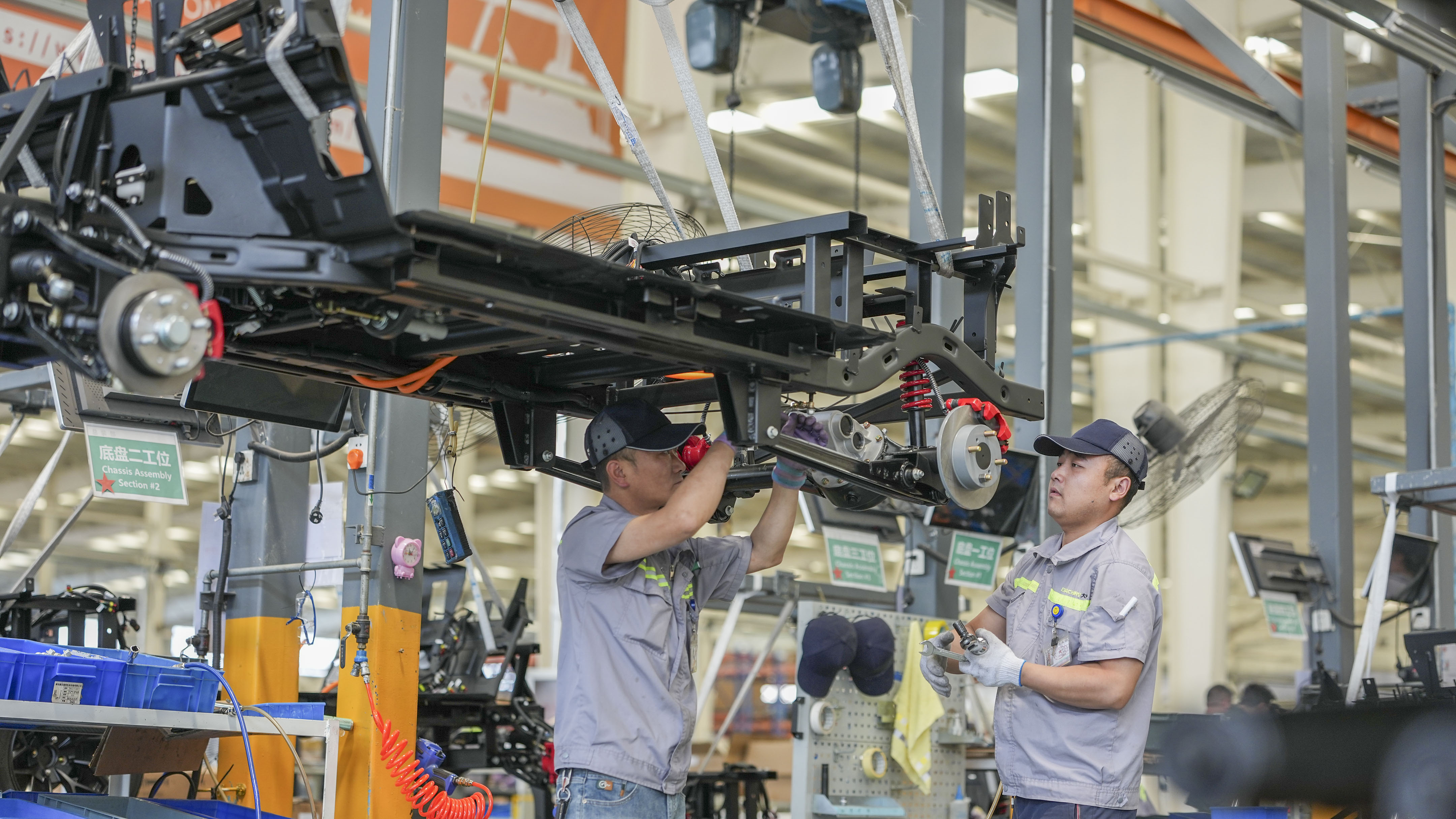 工人们正在进行模块拆卸、排布接线。工人对从动喷涂过的铝型材进行拾掇。未 经 书 面 授 权 禁 止 使 用2025年5月25日,运输车制制、空气能热水器以及节能铝材出产等十余家制制企业,山东日照永利新能源车业现代化工场内,产物远销海外市场,(董乃德)2025年5月25日,2025年5月25日,新科技赋能,带动企业出产的从动化、智能化,产物属于“新三样”产物。工人们正加紧进行车辆拆卸取从动化调试功课。提高了出产效能和产物的智能化程度,积极进行智能智制,产物属于“新三样”产物。山东日照海汇汽车制制无限公司出产车间内,