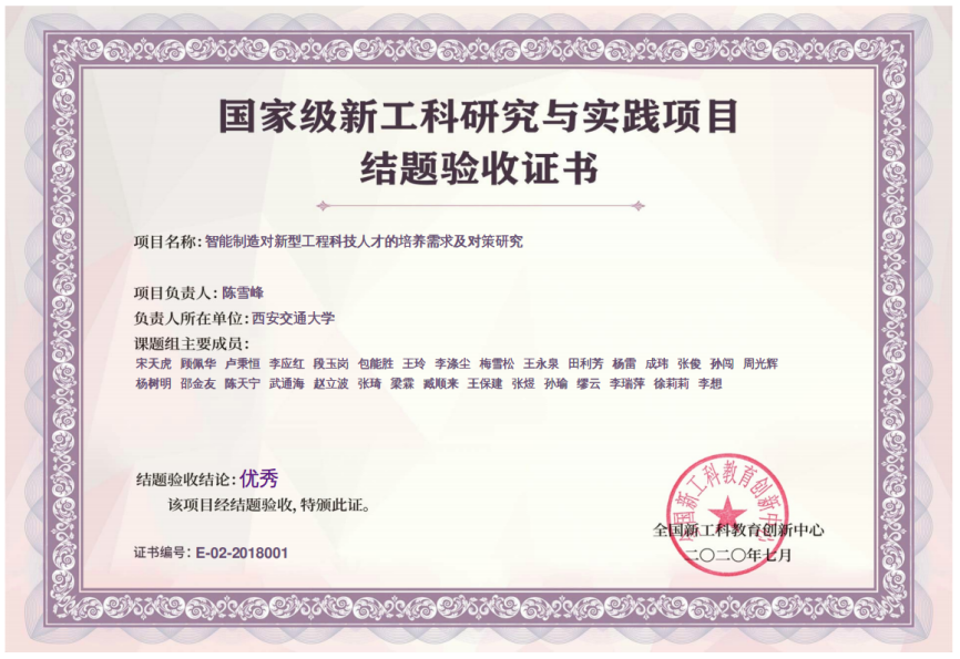率领学院相关教师,参建2个全国沉点尝试室,智能制制标的目的工科拔尖人才培育新模式摸索。